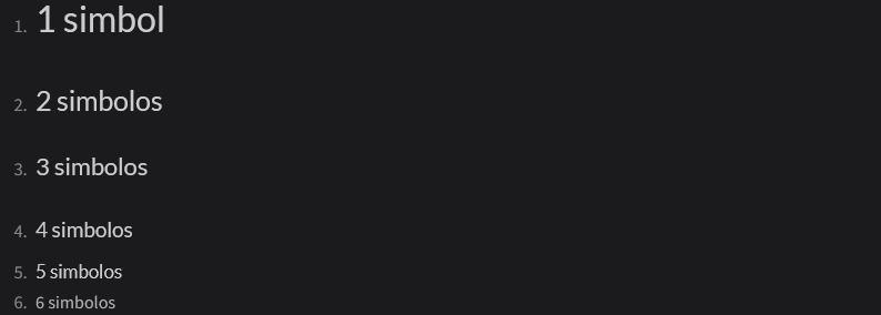 Los parrafos se ponen con simbolo «#», dependiendo de cantidad de simbolos, parrafo va a estar diferentes tamaños.